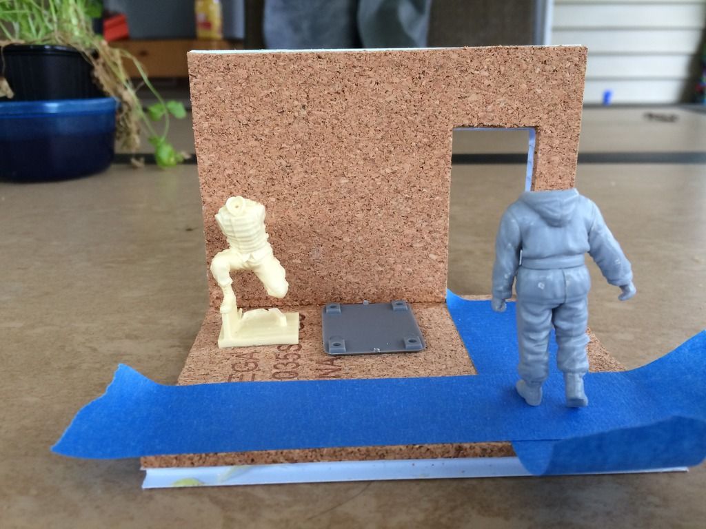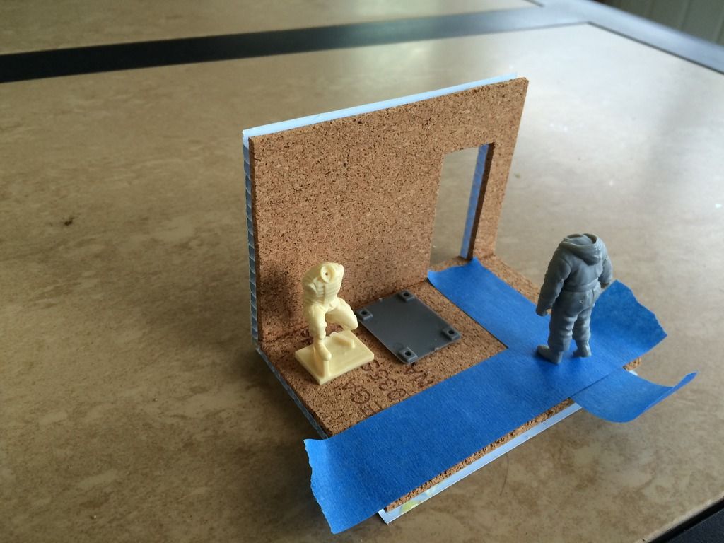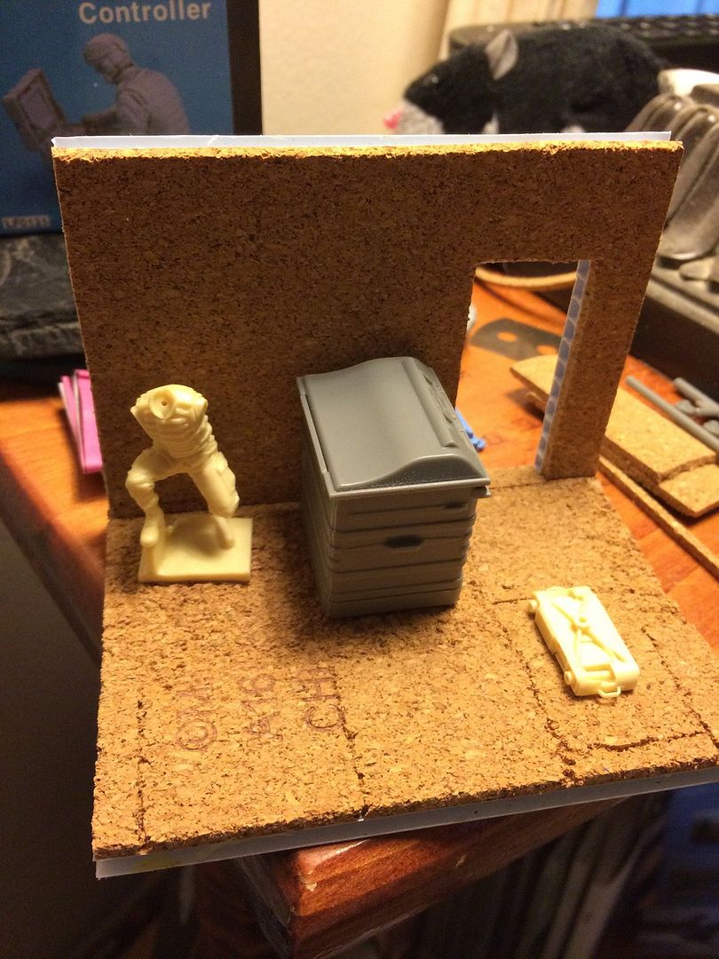 For the rest, a Legend EOD controller with his back to the wall, Blast Tactical robot (pointed at the open door as it's going to enter about midway on the base and a Meng trash bin between the figure and open door way providing some cover.
