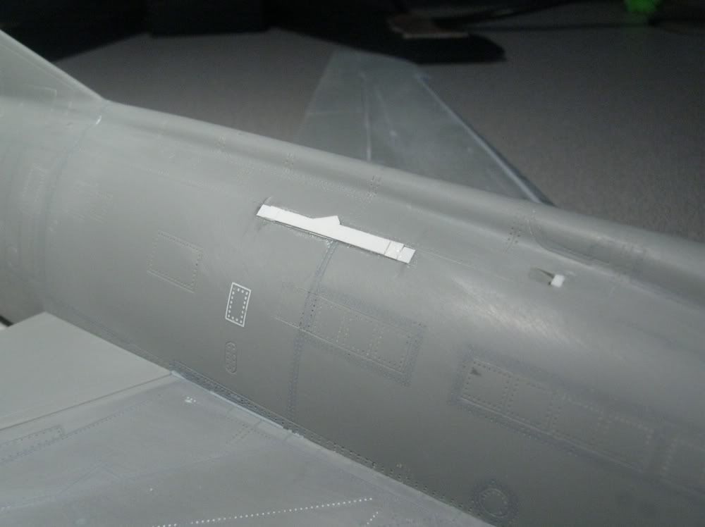 Almost have the Hunzilla ready to prime! I've got to go back and redo the reinforcement band aids on the fuselage. There are supposed to be four layers, and I used .005 styrene, but its still too thick. The glue melted the plastic, too, so I'm going to strip it all off when the plastic hardens and then try some foil. Then all I'll lack is to add the gunsight and windscreen, then start masking.