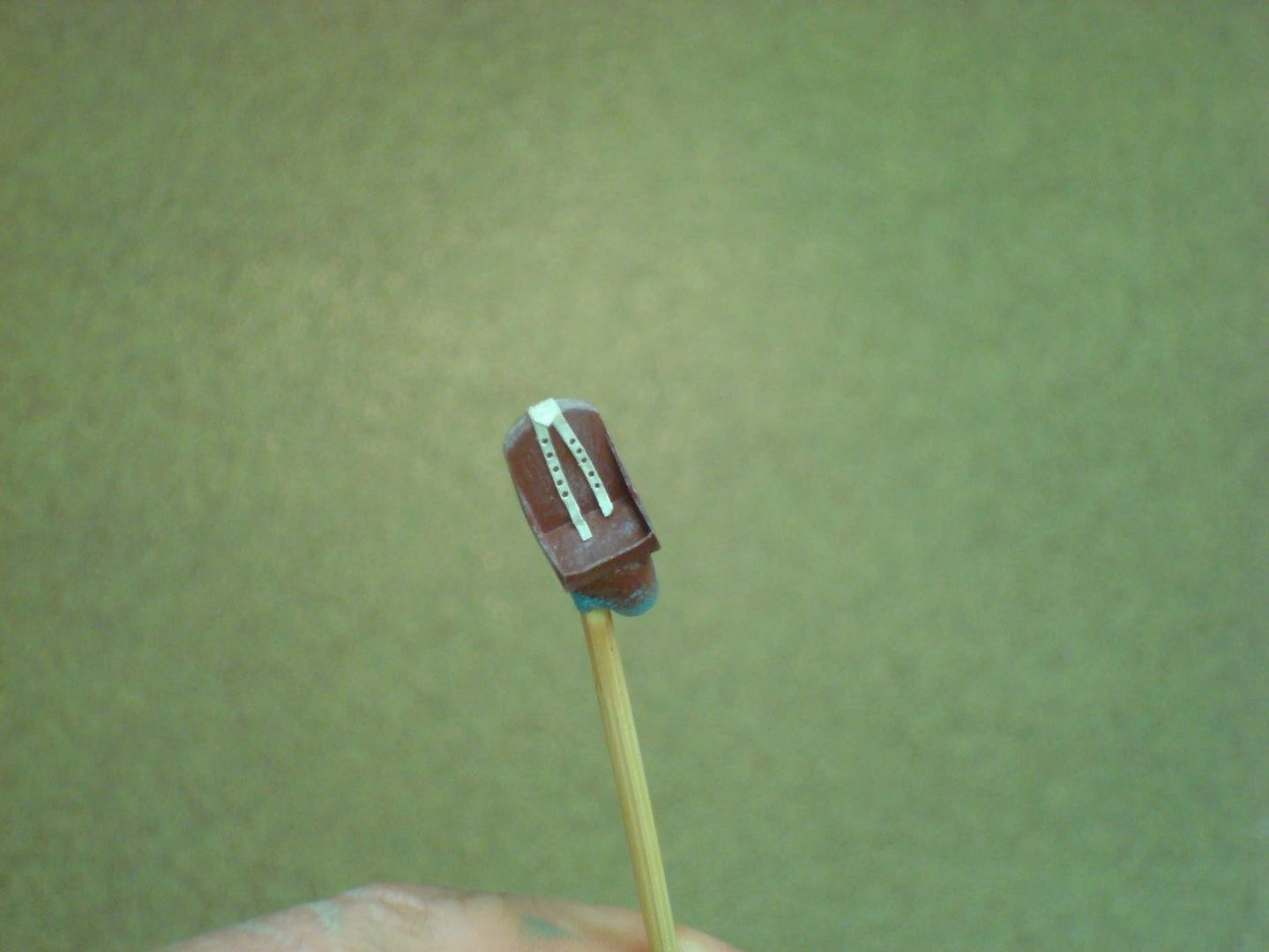 I launched the stick into space, so I had to cobble up another. things were painted and some placard rejects Cliff gave me were added (thanks Cliff)